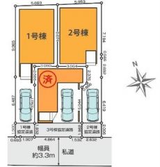 備考 | ■新規一戸建て ■3SLDK+カースペース ■南側私道に面す ■通勤、通学、買物に便利 | ||