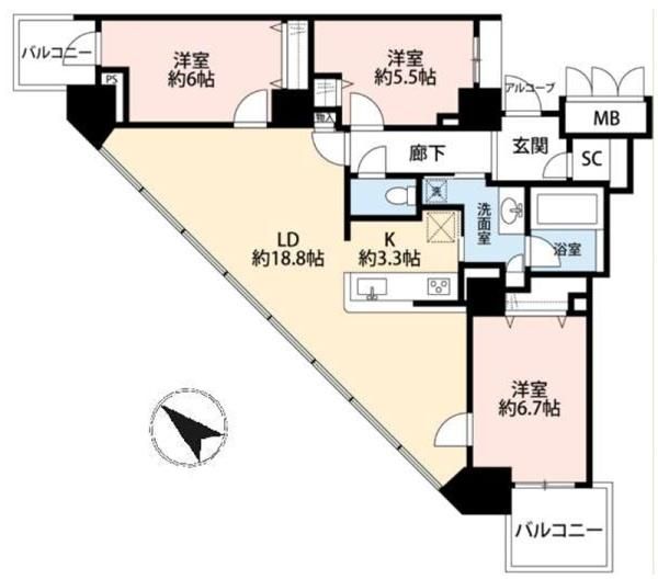 | 所在地 | 管理費 | 専有面積 バルコニー面積 |