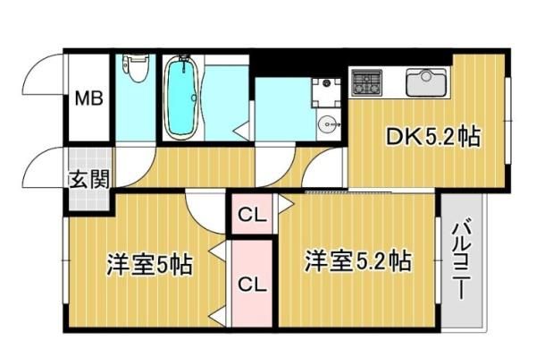 2DK 2階 |