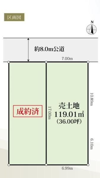 | 備考 | ■建築条件なし ■更地 ■土地面積119・01平米(約36坪) ■北側8m巾公道に面す | ||