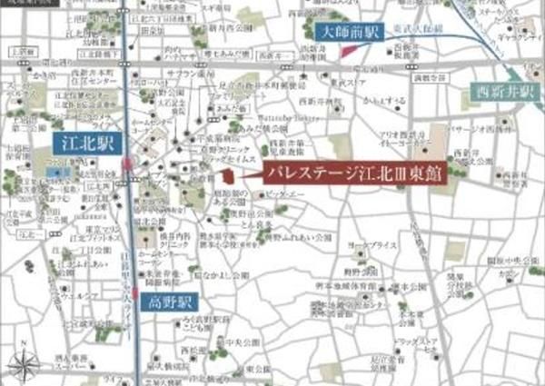 | 交通 | 日暮里舎人ライナー 江北駅 徒歩8分 日暮里舎人ライナー 高野駅 徒歩12分 東武伊勢崎・大師線 大師前駅 徒歩13分 日暮里舎人ライナー 西新井大師西駅 徒歩17分 |