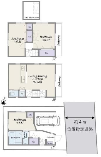 ●2016年築の3階建 カースペース 納戸付き