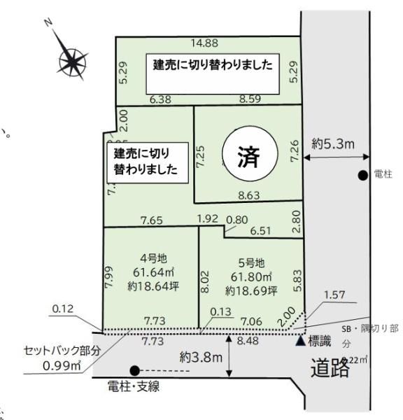 | 物件用途 | - | 接道 | 南西 幅員3.8m 南東 幅員5.3m |