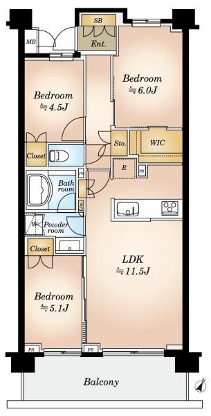 | 所在地 | 管理費 | 専有面積 バルコニー面積 |