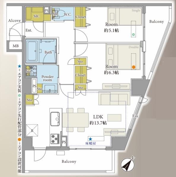 | 所在地 | 管理費 | 専有面積 バルコニー面積 |