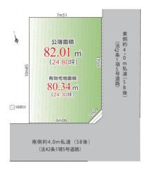 | 物件用途 | - | 接道 | 私道 南 幅員4m 私道 東 幅員4m |